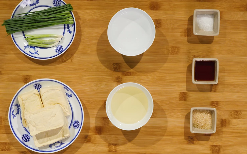 Các nguyên liệu làm món đậu phụ tẩm hành