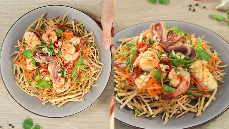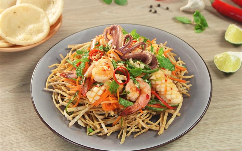 Món gỏi khoai môn hải sản giòn tan