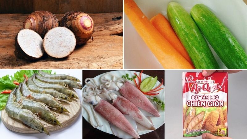 Nguyên liệu làm gỏi khoai môn chiên giòn hải sản