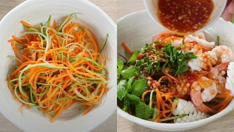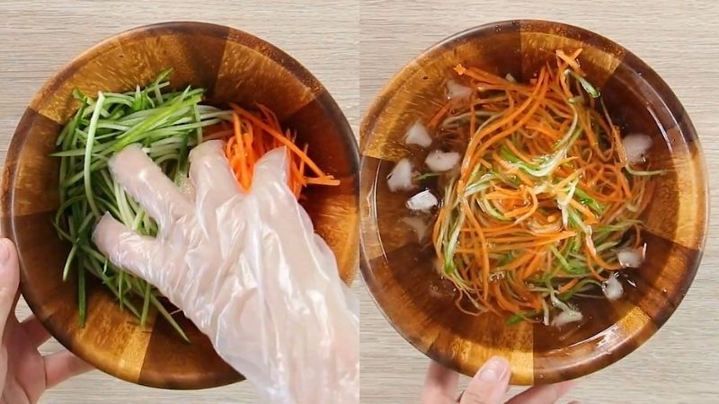 Bước này giúp cà rốt và dưa leo không tiết nhiều nước khi trộn gỏi.